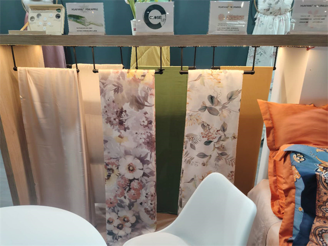 此屆法蘭克福家紡展,華紡股份家紡分公司打造了以“Green world”為主題,以綠色環(huán)??沙掷m(xù)的特色纖維產(chǎn)品為主材質(zhì),研發(fā)了醋酸系列/真橙系列/木棉系列/絲質(zhì)系列/超柔系列/麻系列六大系列產(chǎn)品,從材質(zhì)、功能、膚感、科技、花型、款式等多方面對(duì)產(chǎn)品進(jìn)行了融合升級(jí),吸引了來(lái)自法國(guó)、意大利、葡萄牙等諸多國(guó)家的客戶進(jìn)入展位進(jìn)行咨詢洽談!其中,迎合歐洲市場(chǎng)喜好的亞麻、漢麻提花、色織簡(jiǎn)約條紋產(chǎn)品也成功吸引了來(lái)自歐美的客戶。